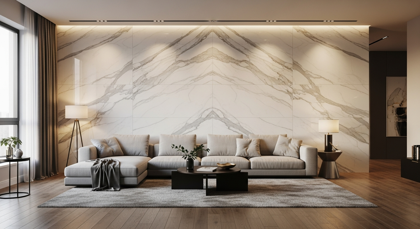 We install accent walls using large-format porcelain tile, natural stone slabs, marble-look porcelain, wood-look tile, and textured 3D tile panels. The material you choose depends on the look you want — and we'll bring samples to your home so you can see them against your existing finishes before you commit.